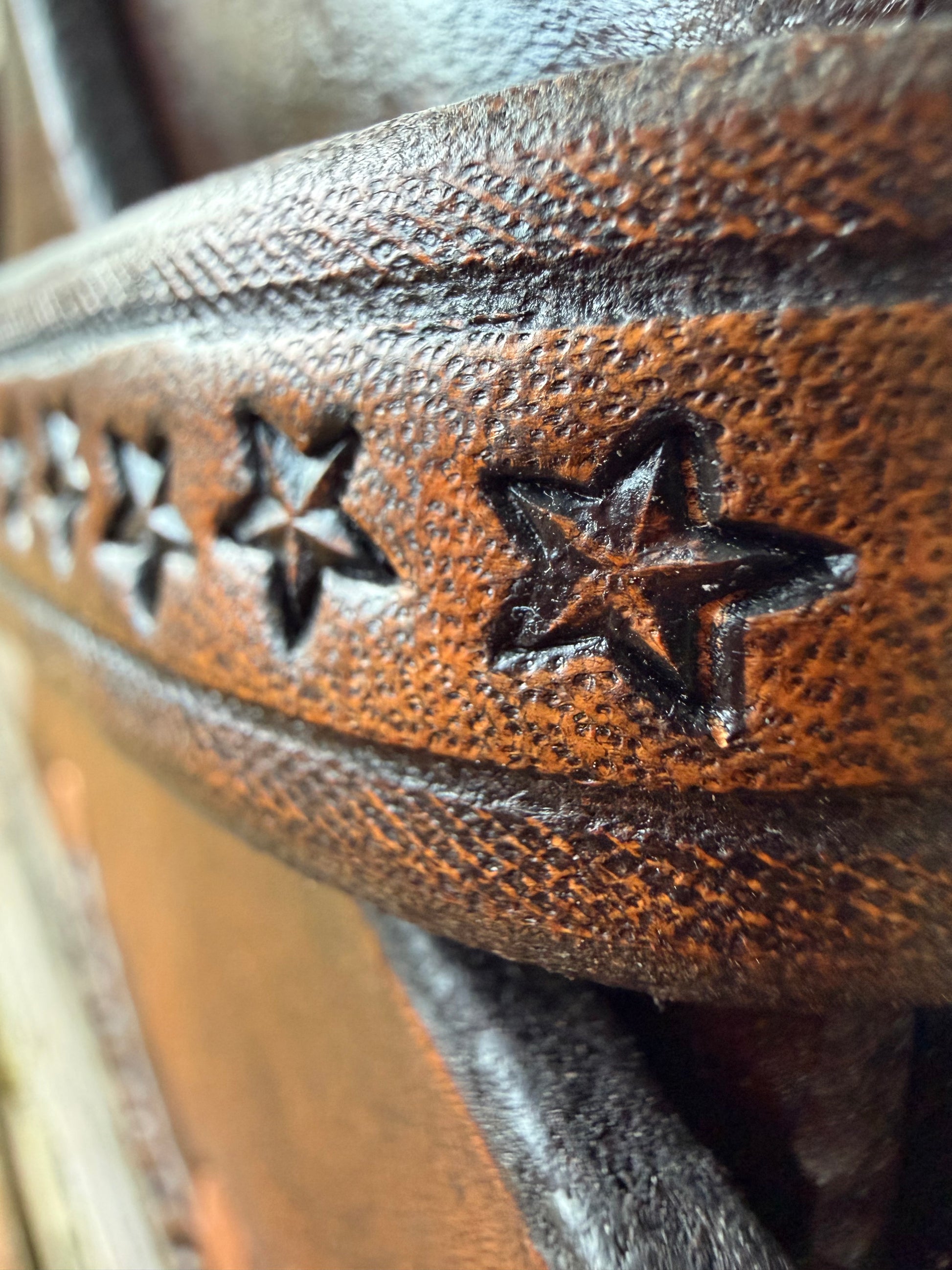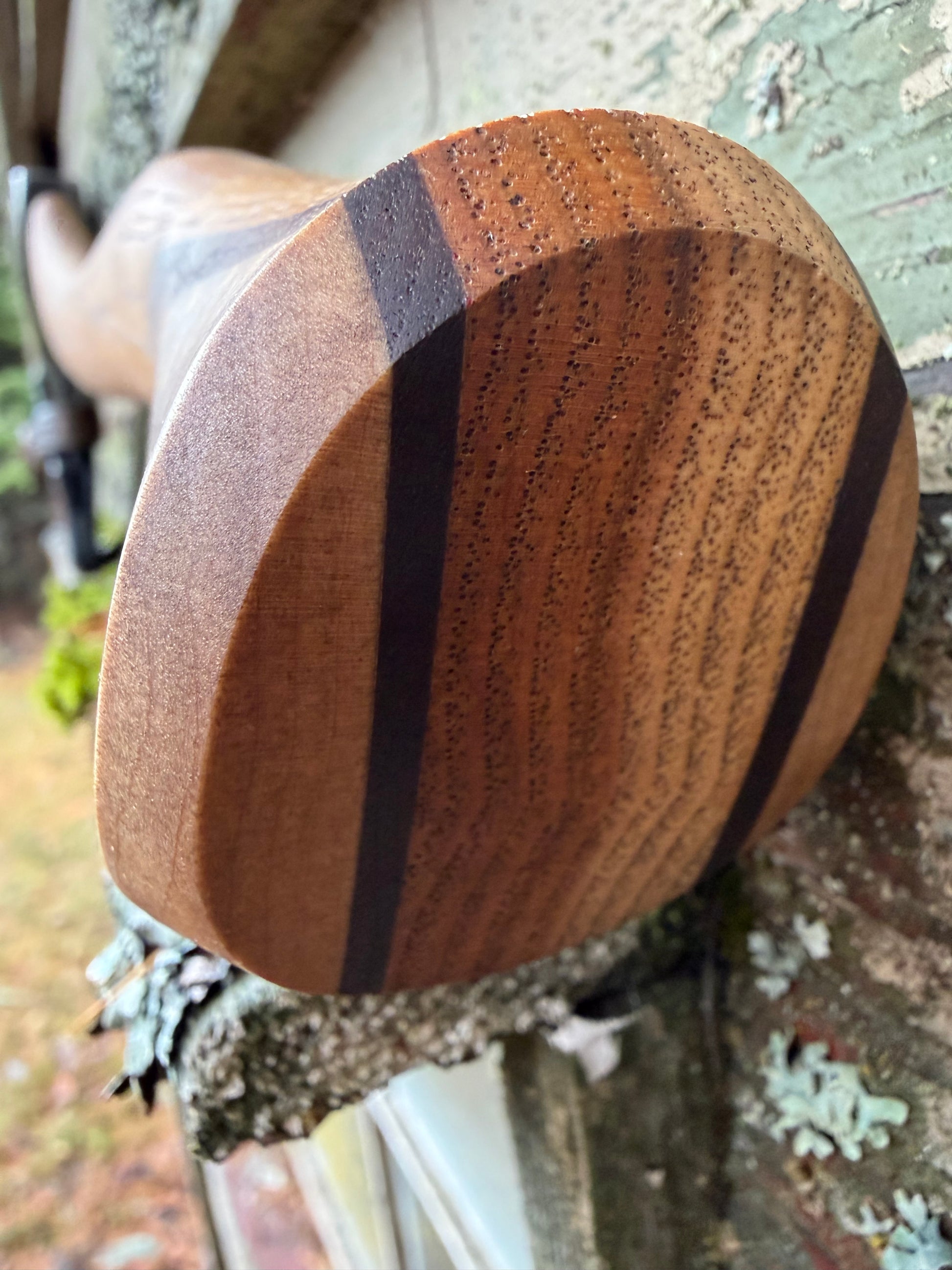 Hand made hickory handle with walnut and curly maple palm swell - Custom hand tooled leather sheath